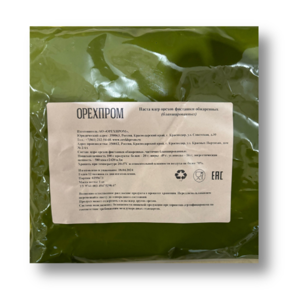 Густая кремообразная масса зеленого цвета со вкусом и ароматом фисташки.